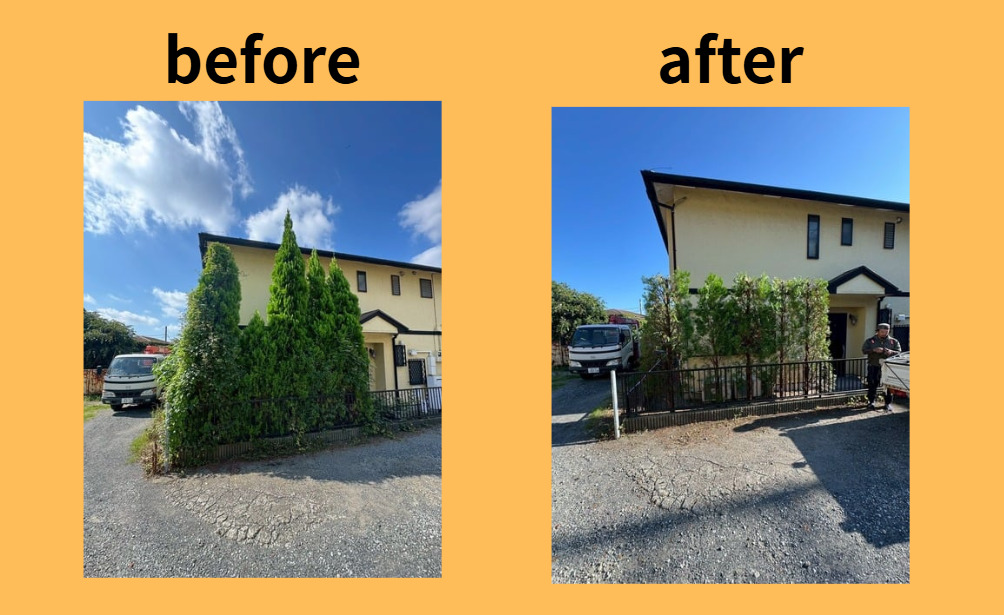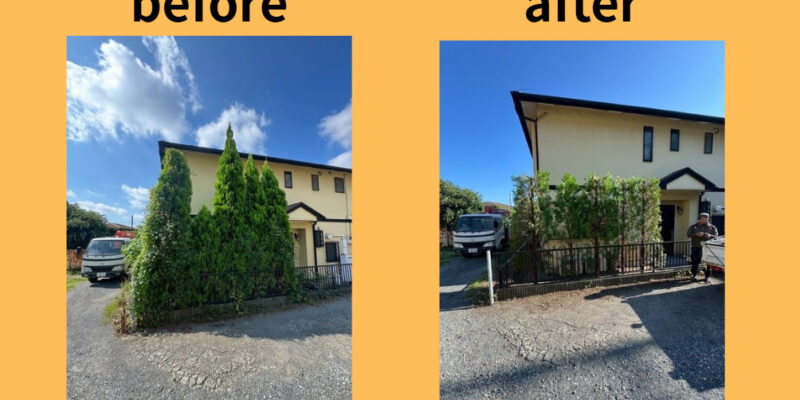 木が隣家に伸びてしまったり、空き家状態で庭木が伸び放題になってしまうとトラブルになりかねませんので、遠方で暮らしている場合でもぜひご相談ください。